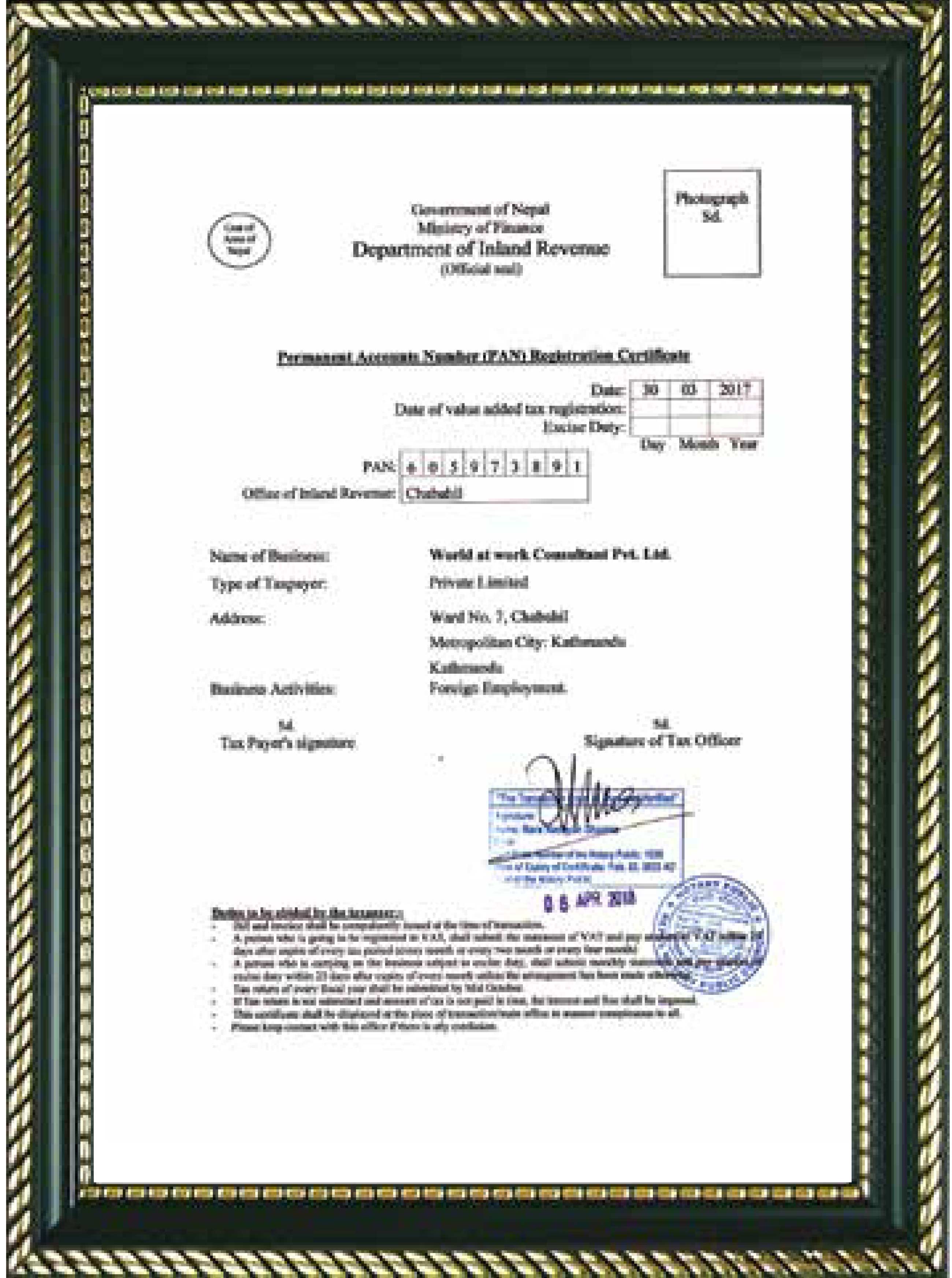 PAN Certificate (Nepali)