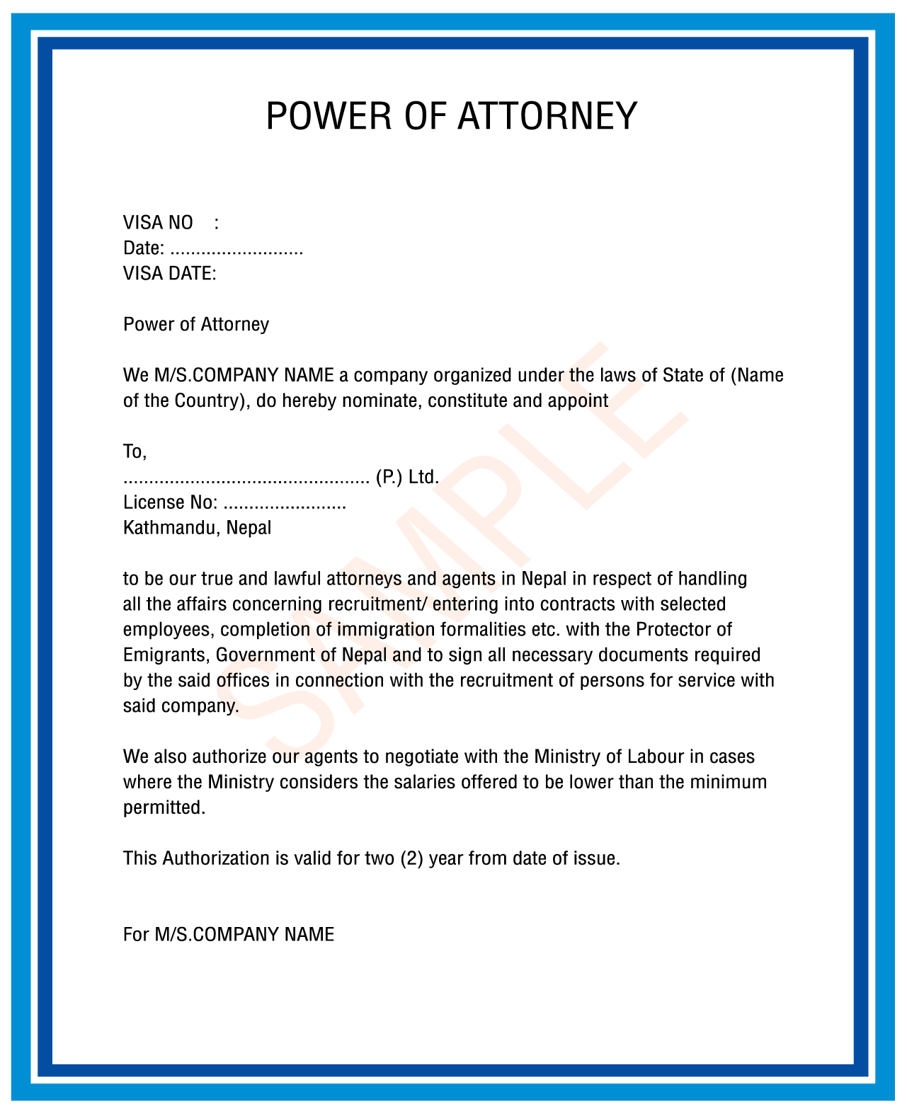Addressed to authorizing World At Work Consultant Pvt. Ltd. (Lic. No. 1499/074/075) Kathmandu, Nepal to be true and lawful attorney and agent of Nepal.